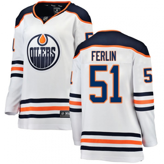 Home>NHL>Edmonton Oilers>Brian Ferlin>Women's Edmonton Oilers #51 Brian Ferlin Authentic White Away Fanatics Branded Breakaway NHL Jersey
