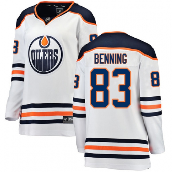 Home>NHL>Edmonton Oilers>Matt Benning>Women's Edmonton Oilers #83 Matt Benning Authentic White Away Fanatics Branded Breakaway NHL Jersey