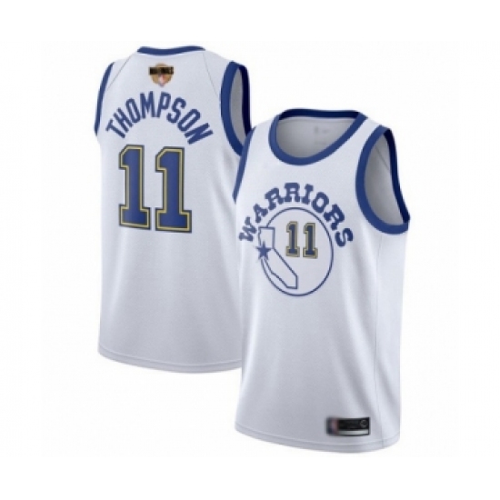 >Women's Golden State Warriors #11 Klay Thompson Swingman White Hardwood Classics 2019 Basketball Finals Bound Basketball Jersey