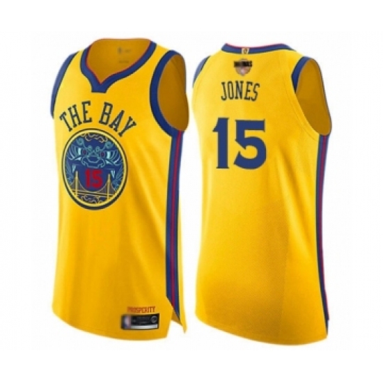 Women's Golden State Warriors #15 Damian Jones Swingman Gold 2019 Basketball Finals Bound Basketball Jersey - City Edition