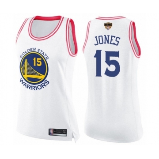 Women's Golden State Warriors #15 Damian Jones Swingman White Pink Fashion 2019 Basketball Finals Bound Basketball Jersey