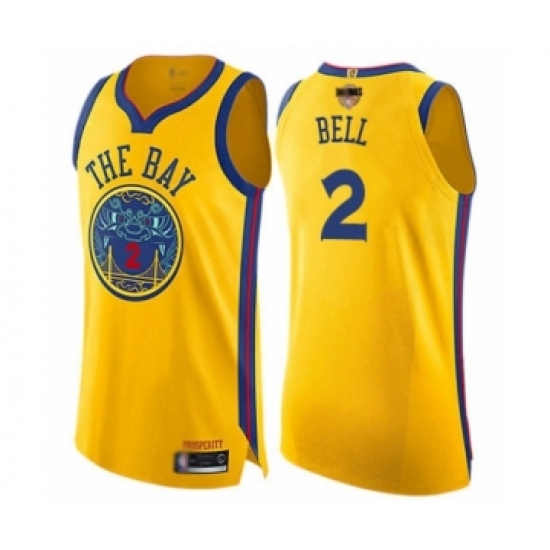 Women's Golden State Warriors #2 Jordan Bell Swingman Gold 2019 Basketball Finals Bound Basketball Jersey - City Edition