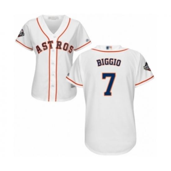 >Women's Houston Astros #7 Craig Biggio Authentic White Home Cool Base 2019 World Series Bound Baseball Jersey