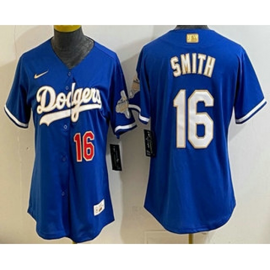 >Women's Los Angeles Dodgers #16 Will Smith Blue 2026 Gold Collection Stadium Jersey