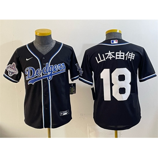 >Women's Los Angeles Dodgers #18 山本由伸 Black Fashion 2025 World Series Champions Cool Base Stitched Baseball Jersey(Run Small)