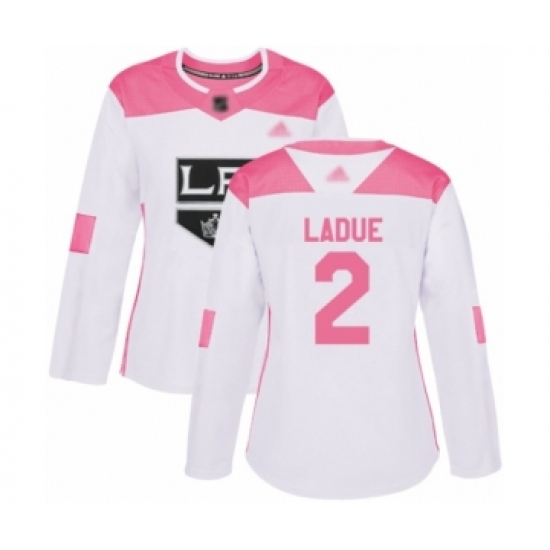 >Women's Los Angeles Kings #2 Paul LaDue Authentic White Pink Fashion Hockey Jersey
