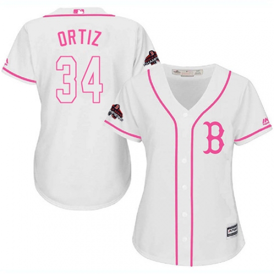 Women's Majestic Boston Red Sox #34 David Ortiz Authentic White Fashion 2018 World Series Champions MLB Jersey