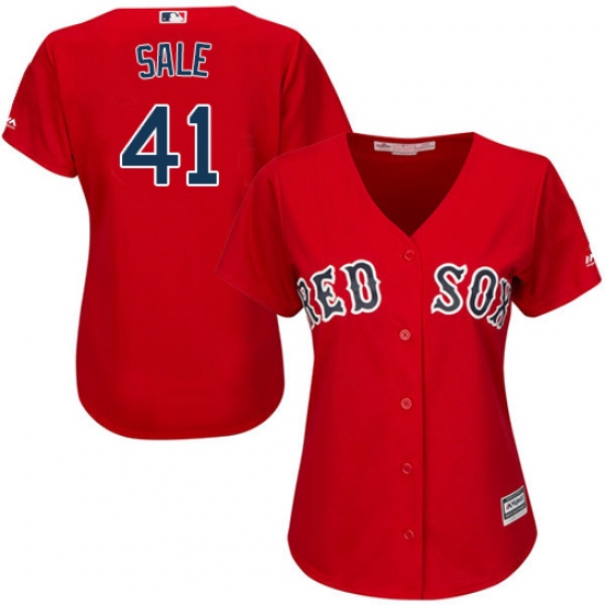 Women's Majestic Boston Red Sox #41 Chris Sale Replica Red Alternate Home MLB Jersey