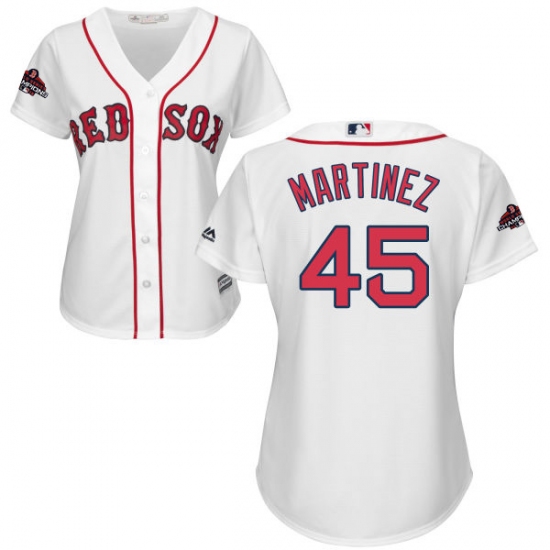 Women's Majestic Boston Red Sox #45 Pedro Martinez Authentic White Home 2018 World Series Champions MLB Jersey