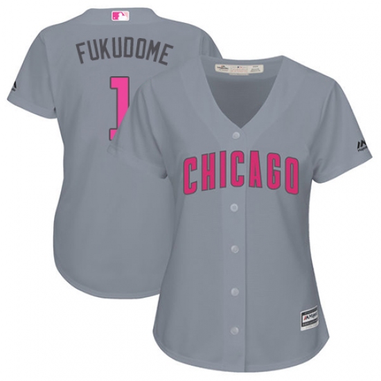 Women's Majestic Chicago Cubs #1 Kosuke Fukudome Authentic Grey Mother's Day Cool Base MLB Jersey