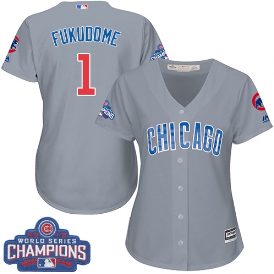 Home>MLB>Chicago Cubs>Kosuke Fukudome>Women's Majestic Chicago Cubs #1 Kosuke Fukudome Authentic Grey Road 2016 World Series Champions Cool Base MLB Jersey