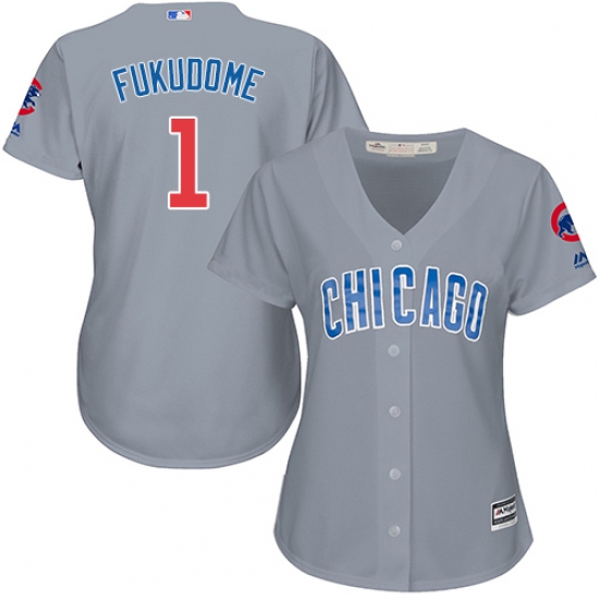 Home>MLB>Chicago Cubs>Kosuke Fukudome>Women's Majestic Chicago Cubs #1 Kosuke Fukudome Replica Grey Road MLB Jersey