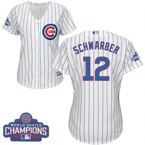 Home>MLB>Chicago Cubs>Kyle Schwarber>Women's Majestic Chicago Cubs #12 Kyle Schwarber Authentic White Home 2016 World Series Champions Cool Base MLB Jersey