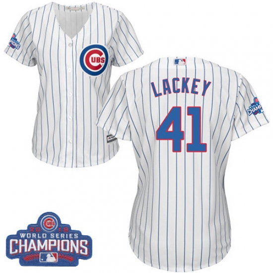 Home>MLB>Chicago Cubs>John Lackey>Women's Majestic Chicago Cubs #41 John Lackey Authentic White Home 2016 World Series Champions Cool Base MLB Jersey