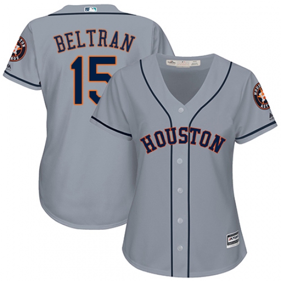 Home>MLB>Houston Astros>Carlos Beltran>Women's Majestic Houston Astros #15 Carlos Beltran Replica Grey Road Cool Base MLB Jersey