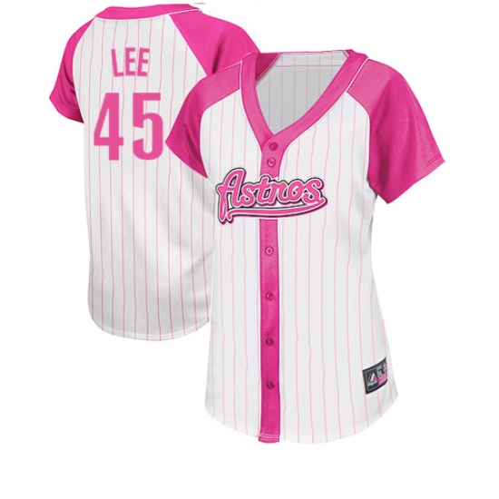 Home>MLB>Houston Astros>Carlos Lee>Women's Majestic Houston Astros #45 Carlos Lee Authentic White/Pink Splash Fashion MLB Jersey