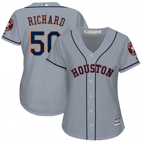 Women's Majestic Houston Astros #50 J.R. Richard Authentic Grey Road Cool Base MLB Jersey