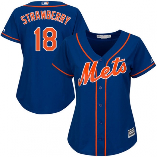 Home>MLB>New York Mets>Darryl Strawberry>Women's Majestic New York Mets #18 Darryl Strawberry Authentic Royal Blue Alternate Home Cool Base MLB Jersey