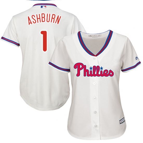 Home>MLB>Philadelphia Phillies>Richie Ashburn>Women's Majestic Philadelphia Phillies #1 Richie Ashburn Replica Cream Alternate Cool Base MLB Jersey