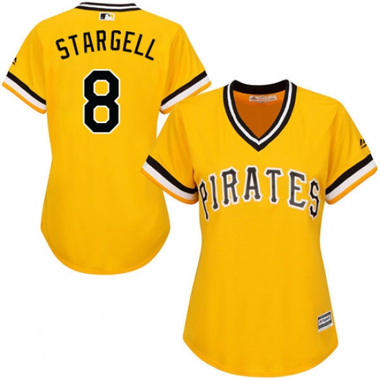 Women's Majestic Pittsburgh Pirates #8 Willie Stargell Replica Gold Alternate Cool Base MLB Jersey