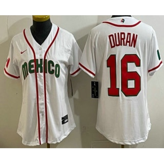 >Women's Mexico #16 Jarren Duran White 2026 World Baseball Classic Cool Base Jersey