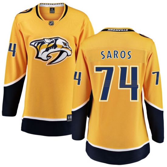 Home>NHL>Nashville Predators>Juuse Saros>Women's Nashville Predators #74 Juuse Saros Fanatics Branded Gold Home Breakaway NHL Jersey