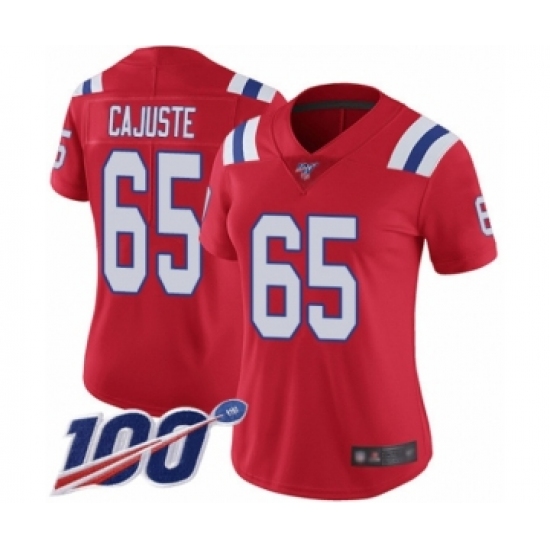 Women's New England Patriots #65 Yodny Cajuste Red Alternate Vapor Untouchable Limited Player 100th Season Football Jersey