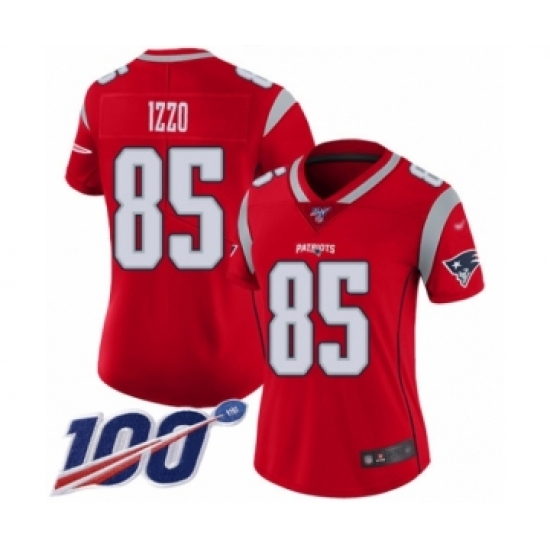 Women's New England Patriots #85 Ryan Izzo Limited Red Inverted Legend 100th Season Football Jersey
