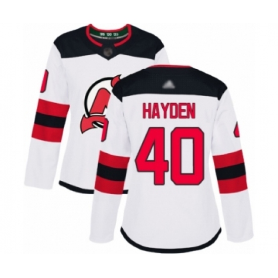 >Women's New Jersey Devils #40 John Hayden Authentic White Away Hockey Jersey