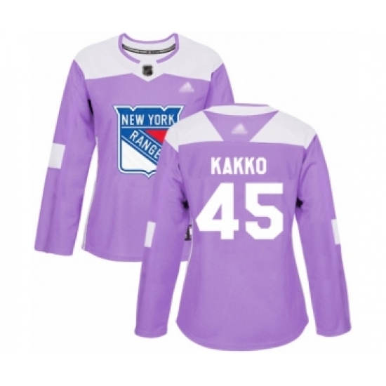 >Women's New York Rangers #45 Kaapo Kakko Authentic Purple Fights Cancer Practice Hockey Jersey