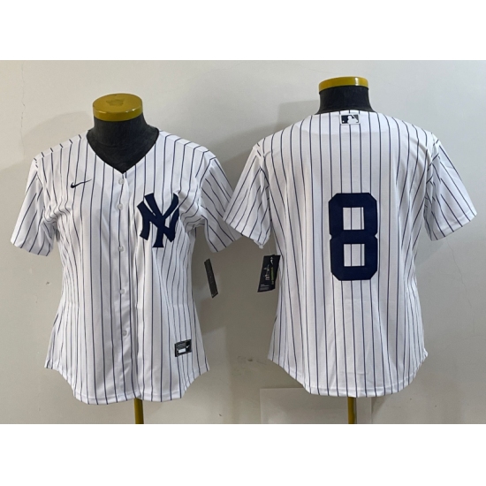 >Women's New York Yankees #8 Yogi Berra White No Name Stitched Nike Cool Base Throwback Jersey