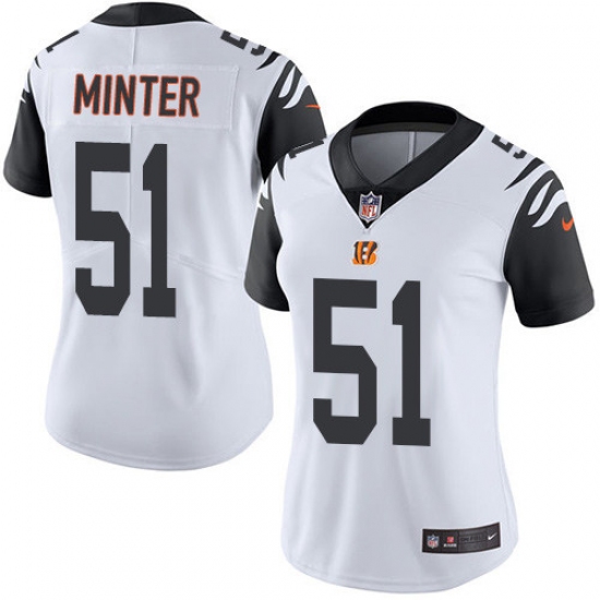 Home>NFL>Cincinnati Bengals>Kevin Minter>Women's Nike Cincinnati Bengals #51 Kevin Minter Limited White Rush Vapor Untouchable NFL Jersey