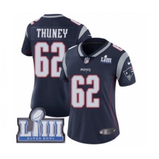 Women's Nike New England Patriots #62 Joe Thuney Navy Blue Team Color Vapor Untouchable Limited Player Super Bowl LIII Bound NFL Jersey
