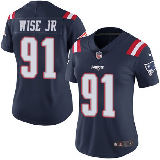 Home>NFL>New England Patriots>Deatrich Wise Jr>Women's Nike New England Patriots #91 Deatrich Wise Jr Limited Navy Blue Rush Vapor Untouchable NFL Jersey
