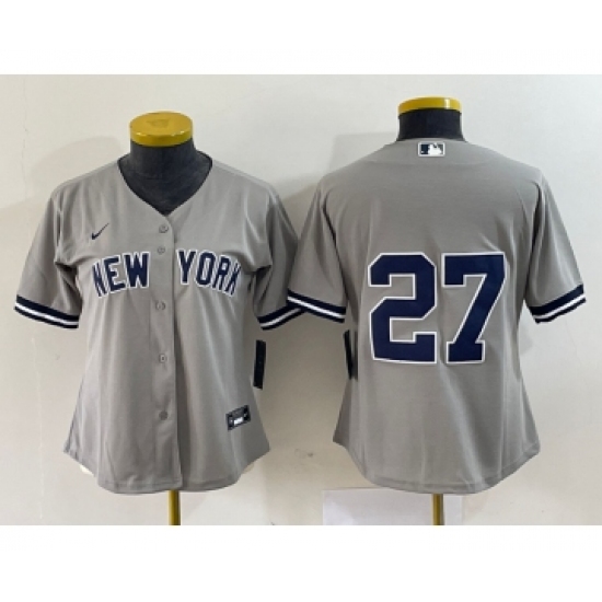 >Women's Nike New York Yankees #27 Giancarlo Stanton Grey No Name Stitched Cool Base Jersey