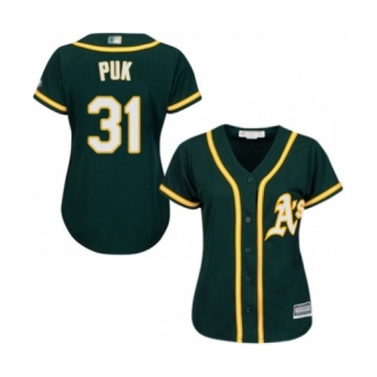 Women's Oakland Athletics #31 A.J. Puk Authentic Green Alternate 1 Cool Base Baseball Player Jersey