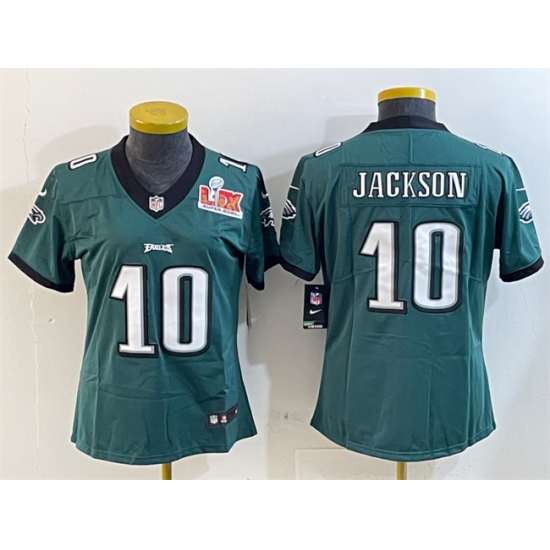 >Women's Philadelphia Eagles #10 DeSean Jackson Green 2025 Super Bowl LIX Vapor Untouchable Limited Football Stitched Jersey(Run Small)