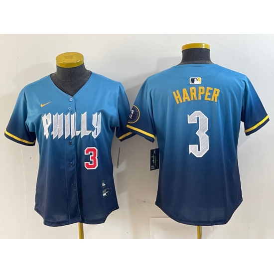 Women's Philadelphia Phillies #3 Bryce Harper Number Blue 2024 City Connect Limited Stitched Jersey