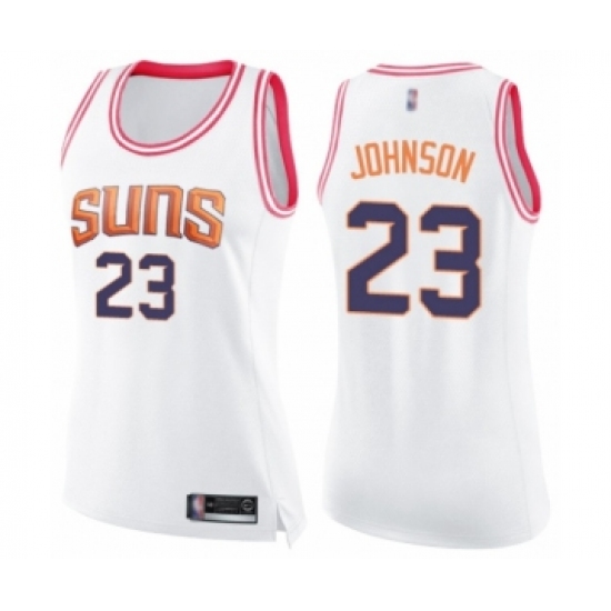 >Women's Phoenix Suns #23 Cameron Johnson Swingman White Pink Fashion Basketball Jersey