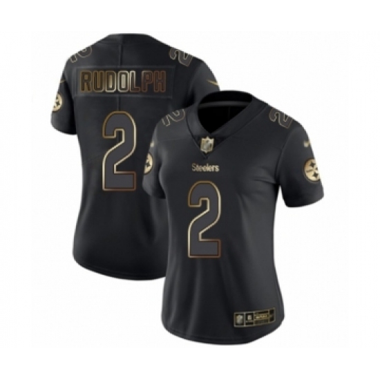 >Women's Pittsburgh Steelers #2 Mason Rudolph Black Gold Vapor Untouchable Limited Player Football Jersey