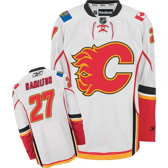 Home>NHL>Calgary Flames>Dougie Hamilton>Women's Reebok Calgary Flames #27 Dougie Hamilton Authentic White Away NHL Jersey