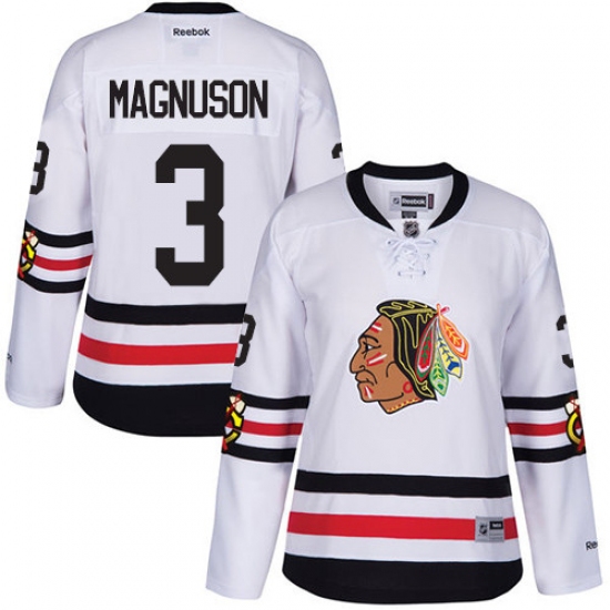 Home>NHL>Chicago Blackhawks>Keith Magnuson>Women's Reebok Chicago Blackhawks #3 Keith Magnuson Authentic White 2017 Winter Classic NHL Jersey