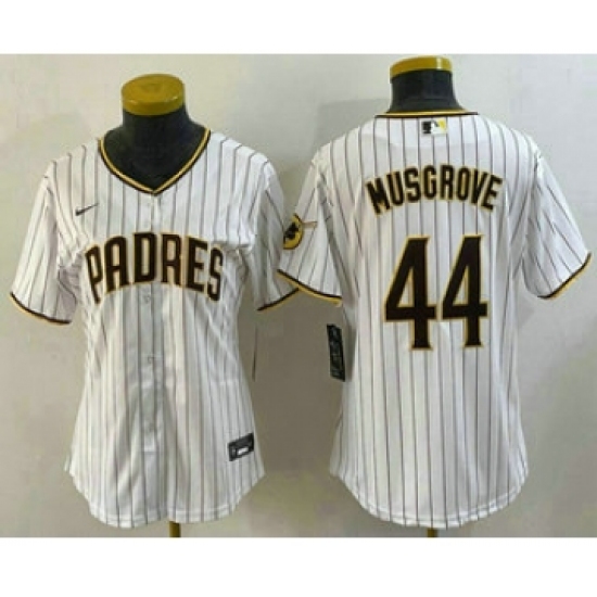 >Women's San Diego Padres #44 Joe Musgrove White Stitched MLB Cool Base Nike Jersey