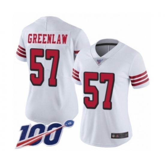 Women's San Francisco 49ers #57 Dre Greenlaw Limited White Rush Vapor Untouchable 100th Season Football Jersey