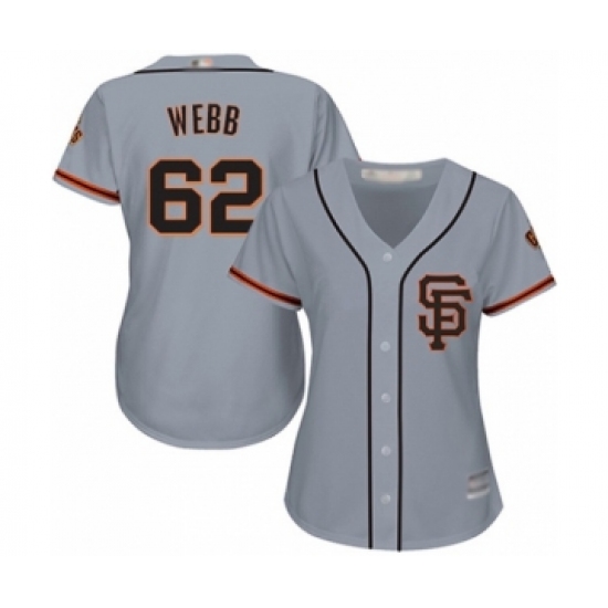 >Women's San Francisco Giants #62 Logan Webb Authentic Grey Road 2 Cool Base Baseball Player Jersey