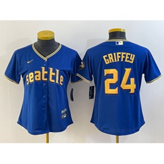 Women's Seattle Mariners #24 Ken Griffey Blue 2023 City Connect Cool Base Stitched Jersey