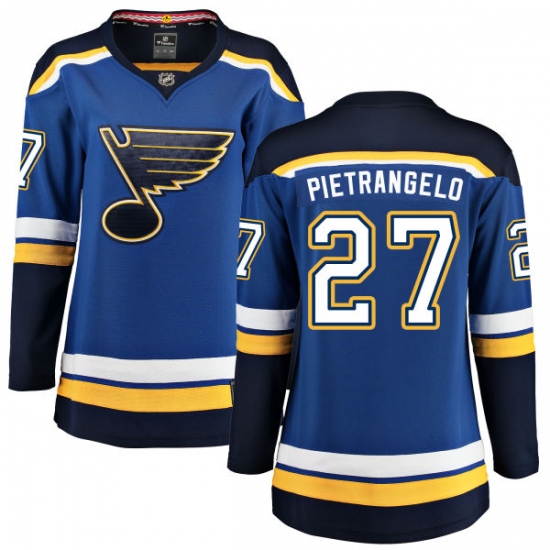 Home>NHL>St. Louis Blues>Alex Pietrangelo>Women's St. Louis Blues #27 Alex Pietrangelo Fanatics Branded Royal Blue Home Breakaway NHL Jersey