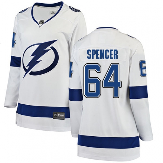 Home>NHL>Tampa Bay Lightning>Matthew Spencer>Women's Tampa Bay Lightning #64 Matthew Spencer Fanatics Branded White Away Breakaway NHL Jersey