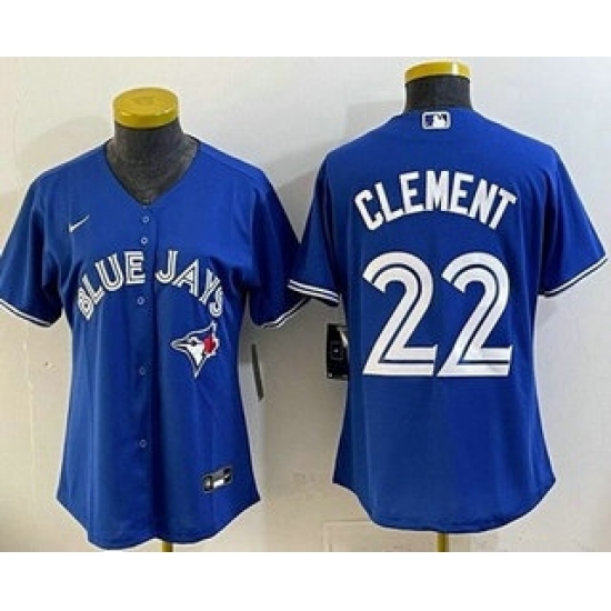 >Women's Toronto Blue Jays #22 Ernie Clement Blue Cool Base Jersey