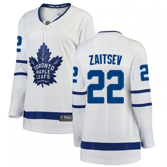 Home>NHL>Toronto Maple Leafs>Nikita Zaitsev>Women's Toronto Maple Leafs #22 Nikita Zaitsev Authentic White Away Fanatics Branded Breakaway NHL Jersey